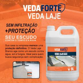 O Veda Laje Branco é um revestimento acrílico líquido indicado para proteção de superfícies como lajes e coberturas. De fácil aplicação, é pronto para uso e aplicado a frio, formando uma camada contínua após a secagem.