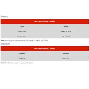 Vedax Block Total Impermeabilizante Cx 12kg Fosco Cor Branco VEDAX REPARO - Argamassa Impermeabilizante para Paredes e Rodapés VEDAX REPARO é uma argamassa de revestimento impermeabilizante monocomponente, de cor branca, pronta para o uso. Formulada com cimentos especiais, aditivos minerais e polímeros, é ideal para tratar umidades ascendentes em rodapés, tanto em áreas internas quanto externas exceto paredes com terra encostada . Indicações de uso: Correção de umidade em rodapés e paredes com umidade ascendente Aplicação em áreas internas e externas Pode ser Utilizado como acabamento final Aceita pintura à base de água Vantagens: Alta resistência à umidade ascendente Aplicação direta sobre o reboco Excelente aderência Fácil de aplicar e nivelar Protege contra mofo e bolor Pode ser lixada ou alisada com esponja Produto durável e de alta performance Como aplicar: 1. Preparo da superfície: Remova tinta, textura, mofo, bolor ou partes soltas. A superfície deve estar limpa, firme e seca. 2. Preparo do produto: Em um balde limpo, adicione 3 litros de água 6 medidas de 500 ml . Misture gradualmente o conteúdo do saco de VEDAX REPARO. Mexa por 3 minutos com misturador mecânico ou 5 minutos manual , até obter uma massa homogênea. 3. Aplicação: Umedeça previamente a superfície com uma trincha ou broxa. Aplique com desempenadeira metálica em camada de 1,5 mm a 4,0 mm. Se necessário, aplique a segunda demão após 6 horas. Espessura final máxima: 4 mm. Acabamento opcional: esponja úmida ou leve lixamento após 2 horas. Aguarde 24 horas antes de pintar. Importante: Evite aplicação sob sol forte. Proteja a área e promova hidratação por no mínimo 3 dias após o serviço. Rendimento: Embalagem de 12 kg rende até 5 m com espessura de 1,5 mm . O consumo pode variar conforme a porosidade e condições da parede. Restrição de uso: Piscinas, caixas dágua e áreas com pressão negativa Estruturas sujeitas a fissuras ou movimentações sem correção prévia Áreas com lençol freático atuante Paredes com terra encostada, muros de arrimo, drywall ou ambientes muito úmidos Não aplicar camadas acima de 5 mm Composição: Cimento, agregado, carga mineral, polímeros, espessantes e aditivos. Armazenamento e validade: Normas técnicas atendidas: ABNT NBR 11905:2015 - Sistema impermeabilizante com cimento e polímeros NBR 15575:2013 - Durabilidade em edificações habitacionais NBR 9575 e NBR 9574 - Projetos e execução de impermeabilização Precauções de segurança: Produto para uso externo. Utilize EPIs durante a aplicação. Em caso de contato com olhos ou mucosas, lave com água em abundância. Consulte a Ficha de Dados de Segurança FDS para mais orientações. Atenção: O desempenho do produto depende da correta aplicação e preparo da superfície. Não nos responsabilizamos por rendimento inferior ou mau desempenho decorrente de uso incorreto.