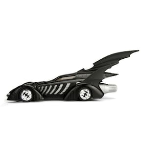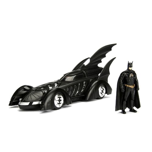Jada Toys DC Comics Batman Forever Batmóvel e Batman Figura 1:24 - Veículo fundido com boneco preto fosco - Autenticamente licenciado pela DC Comics - Como visto em Batman Forever, o Batmóvel Batman Forever foi tirado diretamente da tela grande e trazido a você em um modelo fundido em escala 1:24 com boneco do Batman de 7 cm. - Feito de materiais duráveis, como 100% metal fundido e pneus de borracha premium. - Nosso método de fundição superior nos permite capturar os detalhes ricos do Batmóvel. - Este modelo premium de molde fundido é essencial para qualquer coleção da DC Comics