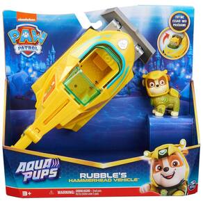 Junte se a Rubble em suas missões de resgate no mar com o veículo de resgate de tubarão martelo Aqua Pups. O veículo apresenta uma transformação emocionante, onde basta colocar Rubble na cabine e fechar a capota para engatar a asa e a barbatana dorsal, transformando o em modo de resgate. Com a cauda de perfuração articulada e a lâmina do martelo, Rubble pode eliminar quaisquer obstáculos no caminho. O brinquedo é perfeito para meninos e meninas a partir de 3 anos, permitindo que eles explorem sua imaginação e desenvolvam suas habilidades motoras enquanto recriam cenas favoritas do show. O conjunto inclui 1 veículo de resgate e 1 figura de Rubble com seu uniforme de mergulho amarelo Aqua Pups completo com capacete e mochila. Para ainda mais diversão, colecione todas as figuras e veículos de brinquedo Aqua Pups vendidos separadamente. Os brinquedos PAW Patrol são ótimos presentes educativos para crianças que gostam de brincar com carros de brinquedo, conjuntos de figuras de brinquedo e jogos de tabuleiro.