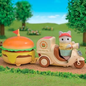 Veículo e Cenário - Sylvanian Families - Quiosque de Hambúrguer - Epoch Magia: Sylvanian Families são adoráveis personagens animais distintos com charmosas e bonitas casas, móveis e acessórios. Eles vivem, trabalham e brincam na idílica e maravilhosa terra de Sylvania. Detalhes: • O conjunto Quiosque de Hambúrguer contém uma lanchonete em forma de hambúrguer, além de uma bicicleta para entrega e o pai Gato de Leite • Desmonte o hambúrguer grande para criar vários itens, como uma barraca de hambúrguer, mesa e cadeiras • Você pode se divertir grelhando hambúrgueres e fritando batatas • Vem com mais de 30 acessórios, incluindo hambúrgueres fofos com pães em formato de orelha de gato e bebidas • A barraca de hambúrguer pode ser configurada de duas maneiras: modo de loja e modo de transporte • A barraca de hambúrguer pode ser acoplada à bicicleta de entrega e levada para toda parte • O pai Gato de Leite, dono da barraca, entrega hambúrgueres deliciosos para todos os moradores • Ele está vestindo um uniforme especial de lanchonete que só está disponível com este conjunto Informações: • Produto: Veículo e Playset Quiosque de Hambúrguer • Marca: Epoch Magia • Coleção: Sylvanian Families • Tipo: Conjunto Cenário e Figura • Categoria: Figuras de Animais e Pets • Subcategoria: Conjuntos, Cenários e Casinhas • Conteúdo: 01 - Figura pai Gato de Leite, Veículo bicicleta de entrega, Telhado, mesa, balcão, caixa de armazenamento, cardápio, caixa registradora, alface, tomate, espeto, suporte para batatas fritas, ketchup, sal, espátula, fritadeira, bandeja de metal, caixa para viagem e viseira 02 - Postes, pães (topo e inferior) 03 - recipiente para batatas fritas 04 - Cadeiras, Bandeja, Batatas fritas, Bebida (G e P) 05 - hambúrgueres (coelho, gato, urso e mordido) • Recomendação: para crianças a partir de 03 anos de idade Especificações: • Referência: 5757 • Código de Barras: 5054131057575 • Embalagem (C x A x L): 29 x 18 x 12 cm • Embalagem (Peso): 0.498 kg • Material / Composição: Plástico Injetado e Tecido • Registro: 004530/2019 • Certificado: Órgãos Autorizados - OCP´S (Organismos de Certificação de Produtos) Aviso: • As imagens são meramente ilustrativas • Os pesos, tamanhos e medidas são aproximados • As cores e estampas dos produtos podem ter variações • As informações são de responsabilidade do fabricante ou fornecedor