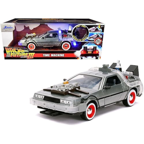 JADA 32166 1:24 BACK TO THE FUTURE PART III TIME MACHINE W LIGHT DELOREANThe diecast é a recriação metálica dos vários meios de transporte e maquinário. É um hobby muito divertido. Existem carros antigos e atuais, carros de rua ou de corrida. Seus detalhes são incríveis e são feitos em grande escala. Existem todos os modelos de motocicletas, caminhões, máquinas agrícolas. Eles são muito atraentes para decoração de quartos, mesas e para recriar o passado. Existem várias escalas. Em muitos casos, é importante relembrar experiências do passado.