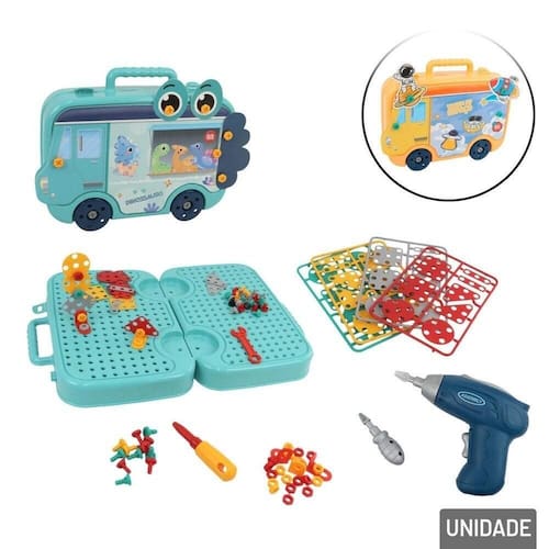 Veículo Monta e Desmonta Maleta e Parafusade O Veículo Monta e Desmonta com Maleta e Parafusadeira Elétrica é o brinquedo perfeito para estimular a criatividade, a coordenação motora e o julgamento lógico das crianças enquanto elas se divertem montando e desmontando seu próprio carrinho!\nCom um design realista e peças simples de encaixar, esse kit permite que os pequenos engenheiros exercitem habilidades manuais ao usar a parafusadeira elétrica, que funciona de verdade, para fixar e remover os parafusos. Acompanham peças desmontáveis ??que tornam a brincadeira ainda mais interativa e educativa.\nA maleta prática e compacta facilita o armazenamento das peças e permite que a criança leve o brinquedo para qualquer lugar, garantindo organização e praticidade.\nAlém da maleta virar um carrinho com rodinhas, ele desenvolve de forma coordenada motora, criatividade e habilidades mecânicas. Permite montar e desmontar várias vezes, incentivando a exploração e aprendizagem, 224 peças de plástico de alta qualidade, sem pontas cortantes, ideal para crianças.\nDisponível em cores e modelos.\nEspecificações:\nMarca : ARK BRASIL\nTipo de material : Componentes Eletrônicos, Plástico, Papel\nCores ou Estampa :\nDimensões do Produto : 19 X 25 X 6,5 CM\nDimensões da Embalagem : 20 X 25,5 X 7 CM\nPeso Bruto (Gramas) : 0.500