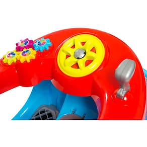 O 1300 Fouks Calesita tem volante didático com som, local para levar garrafa de água e apoio protetor para deixar os passeios ainda mais seguros.