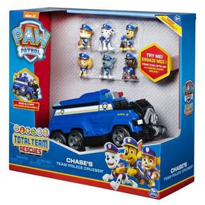 - Inclui: 6 figuras Paw Patrol, 1 veículo de polícia da equipe de Chase