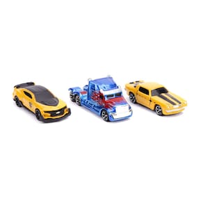 Jada Toys Transformers Nano Hollywood Rides 2016 Chevy Camaro Bumblebee, Western Star 5700XE Optimus Prime e Chevy Camaro Bumblebee 1977, Veículos Fundidos de 4.4 cm, Multi,31125 - NANO HOLLYWOOD RIDES: réplicas de mini veículo autenticamente licenciadas diretamente dos filmes Transformers. - Tamanho colecionável: cada veículo mede aproximadamente 4 cm de comprimento - o tamanho perfeito para sua mesa de escritório, estante de livros e muito mais! - Construção de qualidade: Feito de materiais duráveis, como 100% metal fundido e pneus de borracha premium! - 3 passeios quentes: o conjunto inclui Chevy Camaro Bumblebee 2016, Western Star 5700XE Optimus Prime e Chevy Camaro Bumblebee 1977. - Ótima ideia de presente: adicione estes carros de metal fundido colecionáveis à sua própria coleção ou presentee-os ao fã dos Transformers em sua vida!