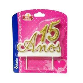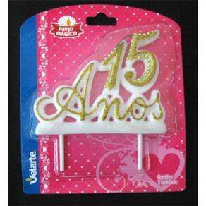Vela 15 anos luxo branca e dourada velarte toda comemoração é especial, mas determinadas datas são únicas. Desta forma, a velarte criou uma linha cheia de glamour e rica em detalhes, valorizando ainda mais este momento. Comemore bodas e aniversários de um jeito inesquecível Composição: vela em 2d de parafina bicolor, aplicações de glitter e adornos, palitos especiais para fixar no bolo, pavio mágico e sistema de segurança contra propagação de chama. Fabricado em parafina, fio de algodão. Cor e modelo conforme foto Dimensões: 11 cm x 8,5 cm Não reutilizável após o uso. Selo de segurança do inmetro Detalhes em glitter.