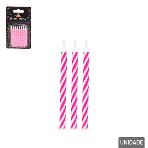 Vela Aniversário 16 Peças Palito Rosa Deixe sua comemoração ainda mais charmosa com a Vela de Aniversário Palito Rosa. Com design clássico e elegante, essas velas são perfeitas para decorar bolos, tortas e doces, trazendo um toque delicado e sofisticado para aniversários, festas e celebrações especiais.\nFabricadas em parafina de alta qualidade, possuem queima estável, segura e durável, tornando o momento do parabéns ainda mais bonito e inesquecível.\nBenefícios:\nDesign simples, elegante e delicado Queima estável e segura Fácil de acender e posicionar no bolo Ideal para aniversários, festas infantis, adultos, bodas e comemorações em geral Especificações Modelo: Palito Cor: Rosa Quantidade: 16 unidades Material: Parafina de alta qualidade Aplicação: Bolos, tortas e doces para festas e comemorações Marca : SILVERFEST Tipo de material : Parafina Cores ou Estampa : Rosa Dimensões do Produto : 6 X 0,5 X 0,5 CM Dimensões da Embalagem : 12 X 7,5 X 1 CM Peso Bruto (Gramas) : 0.190 O que vem na Embalagem 16 velas rosa