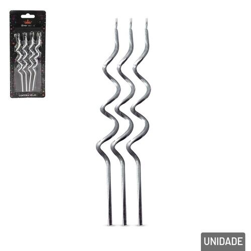 Vela Aniversário 4 Peças Torcida Prata Deixe sua comemoração ainda mais charmosa e especial com a Vela de Aniversário Torcida Prata. Com acabamento delicado na cor rose e formato espiral, ela traz um toque de elegância e sofisticação para bolos, tortas e doces em festas de aniversário, bodas e comemorações especiais.\nFabricada em parafina de alta qualidade, possui queima estável e segura, além de oferecer um design moderno que combina com qualquer decoração.\nBenefícios: Design elegante e sofisticado Queima uniforme, segura e estável Fácil de acender e posicionar no bolo Ideal para aniversários, bodas, festas temáticas e comemorações em geral\nEspecificações Modelo: Torcida (Espiral) Cor: Prata Quantidade: 4 unidades Material: Parafina de alta qualidade Aplicação: Bolos, tortas e doces para festas e comemorações Marca : SILVERFEST Tipo de material : Parafina Cores ou Estampa : Prata Dimensões do Produto : 13 X 0,5 X 0,5 CM Dimensões da Embalagem : 20 X 7,5 X 1 CM Peso Bruto (Gramas) : 0.001 O que vem na Embalagem 4 Velas Torcida Prata