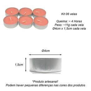 Cada vela: Ø4cm x 1,5cm - ~11g.