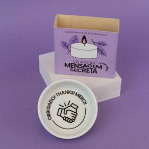 Um dos grandes diferenciais desta vela é a mensagem secreta que aguarda para ser revelada. Ao final da queima, você descobrirá a frase OBRIGADO! THANKS! MERCI!, uma expressão sincera de gratidão que encanta e surpreende quem recebe o presente. Este toque especial transforma a experiência de queimar a vela em um ato de generosidade e carinho, tornando-a um presente memorável.