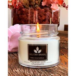 Vela Aromática Premium Morango Com Champanhe 140g 30h Velitah Brasil Vela Aromática Premium Morango Com Champanhe 140g 30h. Fragrância de alta qualidade numa combinação de flores e frutas. Experiência olfativa sensual por aromas doces, florais e frutados. Ideal para aromatização de ambientes de até 30m. Duração acesa: 30h Marca: Velitah Brasil