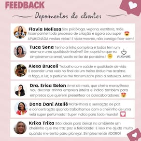 Jamais queime a vela sozinha por mais de 3hs seguidas, sem nenhuma supervisão. Mantenha sempre longe de objetos inflamáveis, crianças e animais domésticos.