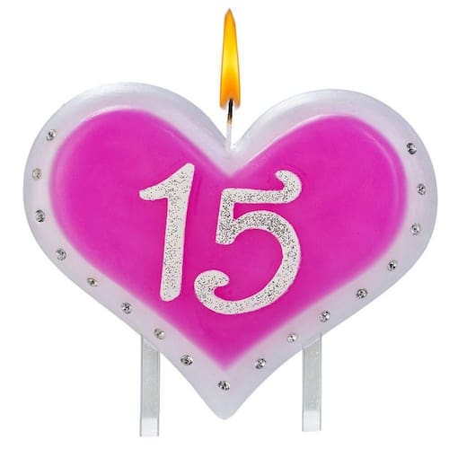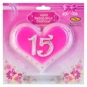 Contém: 01 Vela de Aniversário 15 Anos Coração Rosa Glamour