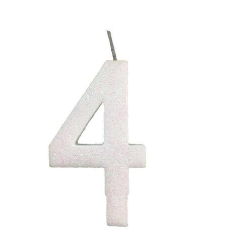 Vela De Aniversário 4 Branca Glitter