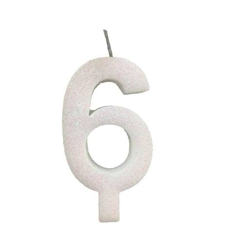 Vela De Aniversário 6 Branca Glitter