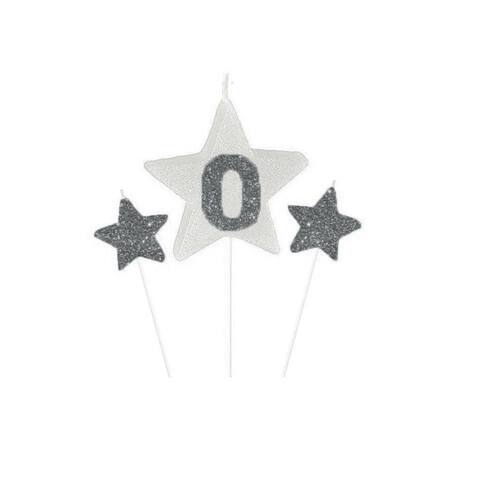 Especificações: Conteúdo: 1 Vela de Aniversário New Star - Branca e Prata - Número 0. e mais 2 velas de estrela