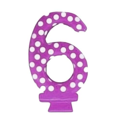 Vela de Aniversário Poá Lilás N6 é feita de parafina, com cores fortes, perfeita para deixar sua decoração e seu bolo ainda mais bonito e divertido! Contando com o formato do número 6, a vela ainda apaga e acende!
