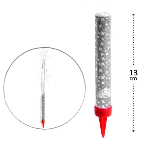 Vela Aniversário Prata A Vela de Aniversário Prata é ideal para deixar o momento do parabéns ainda mais especial e inesquecível. Produz um efeito de faíscas brilhantes na cor vermelha, trazendo mais alegria, brilho e emoção para festas de aniversário, comemorações e eventos.\nFabricada com materiais específicos para gerar esse efeito luminoso, como perclorato, nitrocelulose e titânio, garantindo um show de luz seguro e controlado quando utilizado corretamente.\nBenefícios:\nEfeito de faíscas na cor Prata, trazendo mais brilho para o momento do parabéns Seguro para uso doméstico quando utilizado conforme as instruções Fácil de usar, leve e prático Cria um efeito visual encantador em fotos e vídeos da comemoração Especificações Marca : TOP FESTA Tipo de material : Perclorato, Nitrocelulose, Titâneo, Tubo de papel, Plástico Cores ou Estampa : Prata Dimensões do Produto : 13 X 2 X 2 CM Dimensões da Embalagem : 22 X 6 X 2 CM Peso Bruto (Gramas) : 0.016\nO que vem na Embalagem: 1 Vela Prata