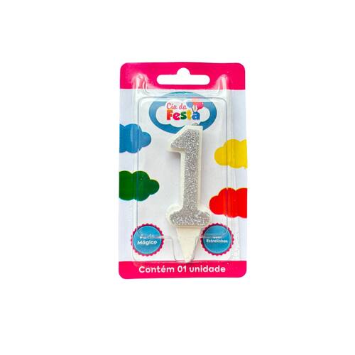 Vela Estilosa Prata Nº1 Cia da Festa. Celebre cada comemoração com um toque mais sofisticado usando a vela Estilosa! Disponível em números que brilham com glitter, esta vela realça qualquer bolo com seu design elegante e cor chamativa. Seu pavio especial cria o efeito de estrelinhas (faíscas) e tem a magia de se reacender ao ser assoprado. Surpreenda seus convidados com um espetáculo de luz e brilho em cada aniversário, tornando seus momentos especiais ainda mais memoráveis com a vela Estilosa da Cia da Festa!