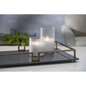 Vela de cera derramada à mão de 5 polegadas D x 8 polegadas H em vidro fosco com brilho exclusivo Illumaflame™ - Linda