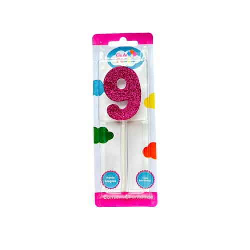 Vela Glamour Rosa Nº9 Cia da Festa. Celebre cada comemoração com um toque de elegância usando a vela Glamour! Disponível em números que brilham intensamente com glitter, esta vela realça qualquer bolo com seu brilho encantador. Equipada com um palito longo para fácil fixação, seu pavio especial cria o efeito de estrelinhas (faíscas) e tem a magia de se reacender ao ser assoprado. Surpreenda seus convidados com um espetáculo de luz e brilho em cada aniversário, tornando seus momentos especiais ainda mais memoráveis com a vela Glamour da Cia da Festa!