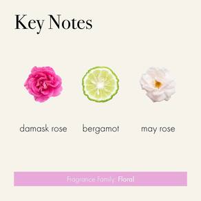 - Aroma – Blush Rose apresenta pétalas delicadas de damasco e rosas de maio, misturadas com um toque de bergamota crocante e pimenta rosa, para criar um buquê atemporal de flores recém-colhidas.