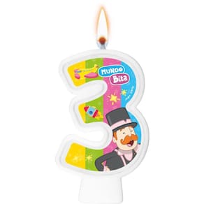 Ilumine a celebração com a Vela de Aniversário Plana Mundo Bita Número 3!