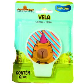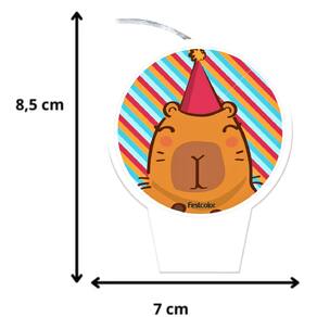 Descrição do produto : " Deixe o momento do parabéns ainda mais especial com a vela temática de Capivara da Festcolor! Com design plano e ilustração divertida, essa vela é perfeita para quem ama a simpatia desse animal tipicamente brasileiro — símbolo de calmaria e bom humor. Fabricada com materiais de qualidade, a vela garante queima segura e duradoura, ideal para decorar o topo do bolo e render fotos incríveis. Uma ótima escolha para festas infantis, temáticas ou para quem quer um toque criativo e fora do comum na celebração. : "