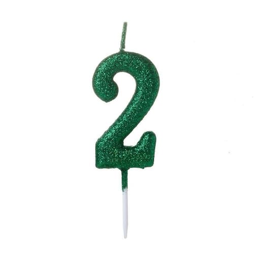 Tamanho: 4,5 cm, ideal para bolos de diferentes tamanhos. Cor: Verde com glitter, que adiciona um efeito brilhante e festivo. Formato: Disponível em formato de número, permitindo que você escolha a idade a ser comemorada.