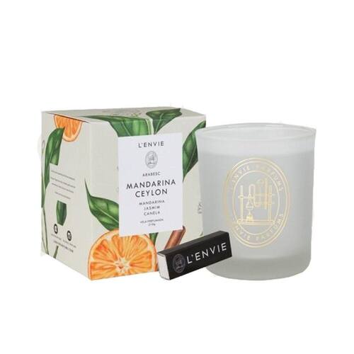 A Vela Perfumada Mandarina Ceylon 210gr é indicado para a perfumação de todos os ambientes, seja em casa ou no escritório. Sua concentração de fragrância proporciona uma maior perfumação. Com uma nova identidade visual a linha Arabesc traduz suas fragrâncias por meio de aquarelas desenhadas nas embalagens. As ilustrações foram feitas por Bella Mary OMahony, ilustradora apaixonada pela natureza e residente na Nova Zelândia.