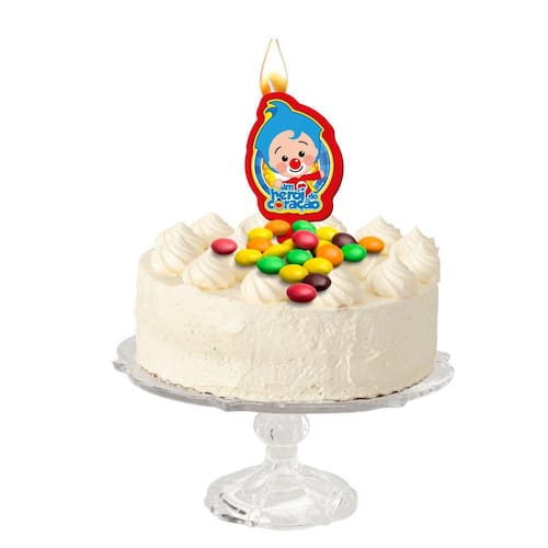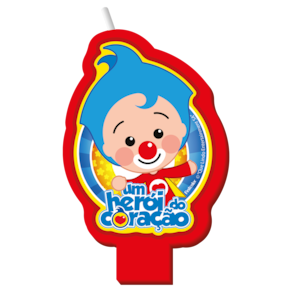 Vela temática do Plim Plim - Um Herói do Coração, perfeita para decorar bolos e criar um ambiente cheio de amor e alegria