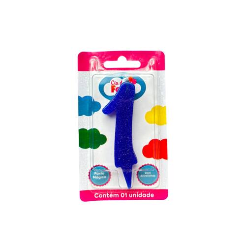 Vela Premium Azul Nº1 Cia da Festa. Celebre cada comemoração com um toque mais sofisticado usando a vela Premium! Disponível em números que brilham com glitter, esta vela realça qualquer bolo com seu design chamativo. Seu pavio especial cria o efeito de estrelinhas (faíscas) e tem a magia de se reacender ao ser assoprado. Surpreenda seus convidados com um espetáculo de luz e brilho em cada aniversário, tornando seus momentos especiais ainda mais memoráveis com a vela Premium da Cia da Festa!