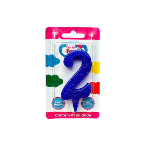 Vela Premium Azul Nº2 Cia da Festa. Celebre cada comemoração com um toque mais sofisticado usando a vela Premium! Disponível em números que brilham com glitter, esta vela realça qualquer bolo com seu design chamativo. Seu pavio especial cria o efeito de estrelinhas (faíscas) e tem a magia de se reacender ao ser assoprado. Surpreenda seus convidados com um espetáculo de luz e brilho em cada aniversário, tornando seus momentos especiais ainda mais memoráveis com a vela Premium da Cia da Festa!