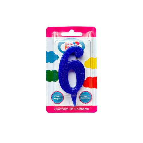 Vela Premium Azul Nº6 Cia da Festa. Celebre cada comemoração com um toque mais sofisticado usando a vela Premium! Disponível em números que brilham com glitter, esta vela realça qualquer bolo com seu design chamativo. Seu pavio especial cria o efeito de estrelinhas (faíscas) e tem a magia de se reacender ao ser assoprado. Surpreenda seus convidados com um espetáculo de luz e brilho em cada aniversário, tornando seus momentos especiais ainda mais memoráveis com a vela Premium da Cia da Festa!