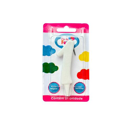 Vela Premium Branca Nº1 Cia da Festa. Celebre cada comemoração com um toque mais sofisticado usando a vela Premium! Disponível em números que brilham com glitter, esta vela realça qualquer bolo com seu design chamativo. Seu pavio especial cria o efeito de estrelinhas (faíscas) e tem a magia de se reacender ao ser assoprado. Surpreenda seus convidados com um espetáculo de luz e brilho em cada aniversário, tornando seus momentos especiais ainda mais memoráveis com a vela Premium da Cia da Festa!
