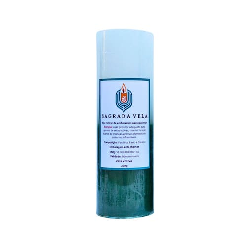 Vela Votiva de 7 Dias 100% Parafina - Fabricação Própria. Contém: 1 unidade.Cor: Branca e Verde. Peso: 260 gramas. Altura: 15 cm. Diâmetro: 50 mm. Composição: Parafina, Corante e Pavio. Validade: Indeterminada. Marca: SAGRADA VELA. *Atenção: Plástico Anti-Chamas, NÃO retirar para acender. *Segurança: evite acidentes, utilize sempre um castiçal ou suporte próprio para velas. *Duração: 7 dias. As condições de queima podem alterar conforme o ambiente ou corrente de ar, portanto é indicado acender em local arejado e longe do alcance de crianças, animais domésticos e produtos inflamáveis. Como se trata de um produto artesanal, podem existir pequenas variações nas cores das velas. Embalamos cuidadosamente para o transporte. Imagem meramente ilustrativa. Marca: Não Informado