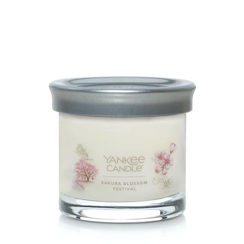 Yankee Candle Sakura Blossom Festival perfumado, exclusivo copo pequeno 122 g vela de pavio único, mais de 20 horas de tempo de queima - Sakura Blossom Festival: sentado sob as cerejeiras florescendo, aproveite o doce buquê de rosas e frésia durante o festival de flores de sakura - Tampa de lata escovada serve como um porta-copos de vela - Pavio de algodão, mistura de cera de soja premium proporciona uma queima limpa - Etiquetas ilustradas à mão e cores vibrantes de cera - Disponível em fragrâncias da coleção Signature e em favoritos selecionados da Yankee Candle