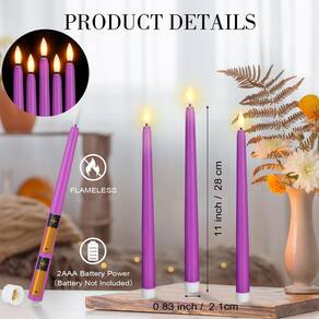 Características: Leve e portátil: Devido ao material agradável, nossas velas cônicas de bateria são leves e fáceis de transportar, não trarão muito peso para você. Além disso, também são fáceis de armazenar sem ocupar muito espaço. Presente quente: Estas velas cônicas sem chama podem ser presentes práticos para familiares, parentes, vizinhos, companheiros e muito mais, tornando-as encantadas e agradáveis na festa. Especificações: Quantidade: 24 peças Tamanho: cerca de 2,1 cm/0,83 polegadas de diâmetro e 28 cm/11 polegadas de altura Cor: como mostrado Material: plástico A embalagem inclui: 24 velas cônicas. Observações quentes: Considere uma pequena diferença no tamanho devido à medição manual. A cor pode ter uma pequena diferença devido a diferentes monitores. Leia atentamente as instruções de tamanho antes de comprar. - Pacote rico: você receberá 24 peças de velas cônicas operadas por bateria, cada uma mede cerca de 2,1 cm de diâmetro e 28 cm de altura, que podem caber no seu suporte, desde que seu suporte seja maior em diâmetro do que a vela - Traga graça: as velas afuniladas de LED são seguras e não geram calor e podem evitar a ocorrência de ignição por chama; com perspectiva clássica, essas velas são bonitas e elegantes, adequadas para vários castiçais - Velas cônicas sem chama fáceis de usar: este interruptor na parte inferior é um interruptor rotativo; abra a tampa da bateria e coloque 2 pilhas AAA na vela (bateria não incluída), economizando tempo e mão de obra - Cheio de vibração de festival: adotando cone realista e cintilação amarela clara, estas velas cônicas operadas por bateria podem facilmente criar uma atmosfera de festival - Amplos usos: velas cônicas sem chama são decorações inovadoras para celebrações de casamento, festas de aniversário, fotografia de casamento, fotos artísticas, que podem desencadear uma atmosfera forte; também podem ser usadas como velas de igreja, presentes de Natal, luzes noturnas
