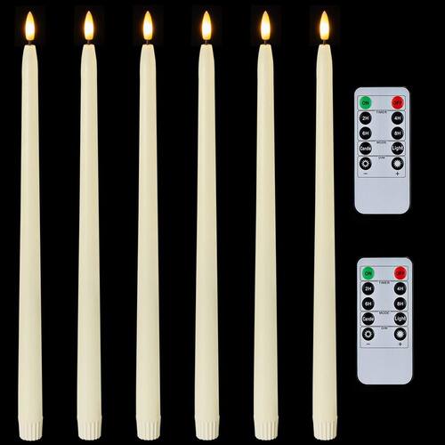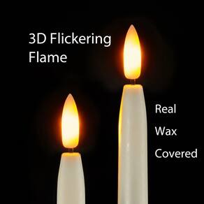 Homemory Velas cônicas sem chama marfim de 38 cm, pacote com 6 - Cobertura de cera real: estas velas cônicas realistas operadas por bateria estão usando camadas de cera reais, com plástico e aço protegendo o circuito, não derretem, não racham e não se degradam com o tempo, simulando perfeitamente os efeitos das velas cônicas cintilantes, e os fundos de borracha macia são realmente um bônus para garantir que eles se encaixem em seus suportes com precisão. - Chama 3D realista: o design de uma conta de LED 3D permite que a chama elétrica da vela cônica não tenha defeitos de todos os ângulos, juntamente com um pavio preto sob a luz amarela quente, simulando os efeitos de chama reais e as luzes LED podem evitar queimar e fumar da chama, nunca se preocupe com seus filhos ou animais de estimação se machucando ao usar essas velas afuniladas de LED. - Dimmer temporizador remoto: Homemory personalizou as funções que você precisa. (1). 2 modos de luz, simula luz de chama cintilante ou luz estável. (2). A função de temporizador de 2-4-6-8 horas economiza seu tempo para ligar e desligar esses castiçais sem chama ao mesmo tempo todos os dias. (3) Crie o efeito de iluminação mais quente através do dimmer para torná-lo mais brilhante ou mais suave, dependendo do humor que você procura. - Altura 38 cm x Diâmetro 2 cm: Alimentado por 2 pilhas AAA, fornece mais de 30 dias de tempo de funcionamento (as baterias não estão incluídas), com o tamanho de velas cônicas tradicionais reais e fundos de borracha macia, esses castiçais remotos podem caber perfeitamente em seus castiçais como adornos maravilhosos para peitoris de janelas, lareiras e salas de jantar. Decorações perfeitas para casamentos, Páscoa, Ação de Graças e celebrações de Natal, e também pode ser um presente especial e surpreendente para seus amigos e familiares. - Pacote e serviço: cada pacote contém 6 velas cônicas e 2 controles remotos. Cada castiçal de LED é rigorosamente testado antes da venda, evite usá-los em ambientes de alta temperatura. Se houver algum problema durante o uso, com nossa equipe de suporte ao cliente, estaremos sempre ao seu serviço.