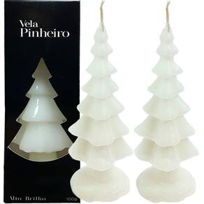 Velas Decorativas Natalino Pinheiro Branco De 20cm Kit 4pçs -