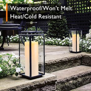 Homemory Velas grandes à prova d'água sem chama de 25,4 cm x 10 cm com controle remoto e temporizador, velas LED cintilantes operadas por bateria para lanternas internas e externas, varanda, longa duração, conjunto de 2 - IPX5 para exterior: feitas de plástico, as velas grandes à prova d'água Homemory são adequadas para uso externo, pois são à prova de intempéries e não derretem, podem suportar chuva e luz solar, também funcionam muito bem em ambientes frios. - Fácil de usar: o interruptor na parte inferior permite que você ligue e desligue as velas impermeáveis ao ar livre. O controle remoto oferece opções de temporizador 2H/4H/6H/8H, o que evitará o problema de ligar/desligar as velas do temporizador, pois elas voltarão a ligar automaticamente no mesmo horário todos os dias. Além disso, você pode ajustar os modos de luz (cintilação/brilho constante) e o nível de brilho conforme desejar. - Brilhante e duradoura: as lâmpadas LED das velas externas remotas emitem uma luz amarela quente e brilhante, o brilho pisca ligeiramente como a luz de vela natural. Cada vela LED requer 3 pilhas AA (não incluídas). Usando baterias avançadas, estas velas de bateria podem acender por mais de 500 horas (continuamente ligadas) / 45 dias (temporizador 6H com baterias de alta qualidade). - Adequado para lanternas: estas velas impermeáveis ao ar livre podem caber na maioria das lanternas internas ou externas. Ideal para casamentos em casa e no jardim, festas ao ar livre e decorações de festivais. Ótimo para definir o clima do seu quarto, varanda e pátio. - O pacote inclui: 2 x velas grandes sem chama ao ar livre (25 cm de altura e 10 cm de diâmetro), 1 controle remoto de 10 teclas e um manual do usuário. Qualquer dúvida, clicando em "entrar em contato com o vendedor".