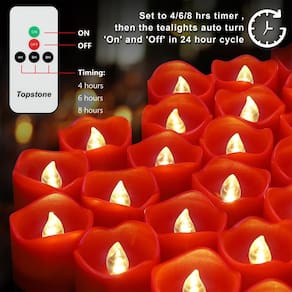 Especificações: Material: ABS, sem cheiro Fonte de alimentação: alimentada por bateria Tipo de lâmpada: Luz LED branca quente embutida Diâmetro: 3,8 cm Altura: 4 cm Alcance do controle remoto: dentro de 8 metros Dimensão da caixa: 17 x 12,5 x 5 cm Requer 1 bateria por vela (incluída). Conteúdo da embalagem: 12 velas LED tealight 1 x manual do usuário (idioma português não garantido). 1 controle remoto. - 1. Bateria CR2450 de longa duração incluída: a luz de LED Topstone pode durar mais de 200 horas sem parar de usar, é mais longa do que a luz do chá alimentada por bateria cr 2032 - 2. Controle remoto conveniente - com 5 botões no controle remoto, "ON", "OFF" "4H", "6H", "8H", você pode facilmente ligar ou desligar todas as velas ou definir o temporizador, sem ter que manusear manualmente as velas, economize seu tempo, facilite sua vida - Temporizador de 3,4, 6,8H - basta pressionar o controle remoto, o temporizador pode ser definido, ele ligará automaticamente no mesmo temporizador no dia seguinte - 4. Chama TPE transparente -- usamos chama TPE transparente ecológica, você ficará impressionado com o brilho das velas de LED sem chama - 5. Seguro para crianças, idosos e animais de estimação - não precisa se preocupar com risco de incêndio, sem fumaça, sem bagunça, sem preocupações