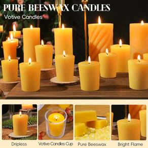 - Sem fumaça e sem gotejamento: a vela votiva é cuidadosamente confeccionada e feita de cera de abelha 100% natural e mechas de algodão de alta qualidade. A chama do pavio de algodão puro não tem fumaça, com menores emissões de fumaça e queima mais limpa. Não é necessário limpar a mesa, liberar as mãos e ajudar a criar um ambiente fresco