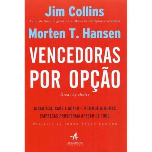 Jim Collins lança mais um trabalho inovador e pergunta: Por que algumas empresas prosperam na incerteza, até mesmo no caos, e outras não? Com base em nove anos de pesquisas, Collins e seu colega Morten Hansen enumeram os princípios necessários para construir uma empresa de sucesso em tempos imprevisíveis, focando não apenas o desempenho, mas também os cenários instáveis que os líderes de hoje enfrentam. Foram estudadas companhias que alcançaram o sucesso em cenários caracterizados por mudanças bruscas que os gestores não podiam prever nem controlar. Os pesquisadores compararam essas empresas com um conjunto formado por organizações que não tiveram o mesmo sucesso em cenários muito semelhantes. Os estudos apresentaram resultados surpreendentes: - Os líderes destas empresas não assumiram mais riscos nem foram mais visionários ou mais criativos; foram, sim, mais disciplinados, empíricos e paranoicos. - A inovação em si não é um trunfo; mais importante é a competência para dosar a inovação e mesclar criatividade com disciplina. - Seguir a máxima segundo a qual liderar em um "mundo veloz" requer "decisões e ações rápidas" é assinar a própria sentença de morte. - As empresas mais bem-sucedidas reagiram às mudanças radicais do mundo com menos mudanças que as do grupo comparativo. Vencedoras por opção é um Collins clássico: contestador, bem pesquisado, edificante. Mostra de maneira convincente que, mesmo num mundo caótico e incerto, o sucesso é uma opção e não apenas um golpe de sorte.