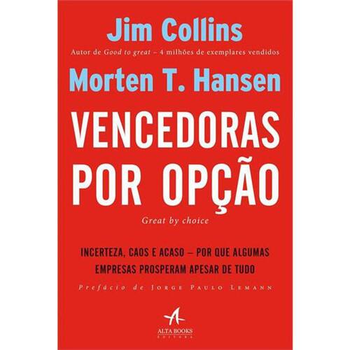 Jim Collins lança mais um trabalho inovador e pergunta: Por que algumas empresas prosperam na incerteza, até mesmo no caos, e outras não? Com base em nove anos de pesquisas, Collins e seu colega Morten Hansen enumeram os princípios necessários para construir uma empresa de sucesso em tempos imprevisíveis, focando não apenas o desempenho, mas também os cenários instáveis que os líderes de hoje enfrentam. Foram estudadas companhias que alcançaram o sucesso em cenários caracterizados por mudanças bruscas que os gestores não podiam prever nem controlar. Os pesquisadores compararam essas empresas com um conjunto formado por organizações que não tiveram o mesmo sucesso em cenários muito semelhantes. Os estudos apresentaram resultados surpreendentes: - Os líderes destas empresas não assumiram mais riscos nem foram mais visionários ou mais criativos; foram, sim, mais disciplinados, empíricos e paranoicos. - A inovação em si não é um trunfo; mais importante é a competência para dosar a inovação e mesclar criatividade com disciplina. - Seguir a máxima segundo a qual liderar em um mundo veloz requer decisões e ações rápidas é assinar a própria sentença de morte. - As empresas mais bem-sucedidas reagiram às mudanças radicais do mundo com menos mudanças que as do grupo comparativo. Vencedoras por opção é um Collins clássico: contestador, bem pesquisado, edificante. Mostra de maneira convincente que, mesmo num mundo caótico e incerto, o sucesso é uma opção e não apenas um golpe de sorte.