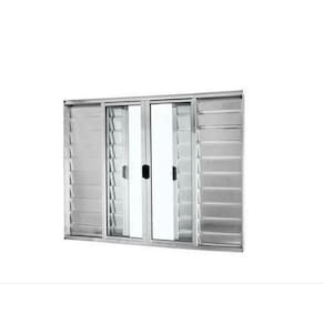 Veneziana 100x100 6 Folhas – Alumínio Brilhante – Linha 18 Modular Janela do tipo Veneziana com 2 folhas veneziana fixas e 2 folhas veneziana móveis (de correr) + 2 folhas de vidro móveis (de correr). Fecho central. Já vem com vidro incluso e pronta para instalar. Não enferruja. De fabricação própria.