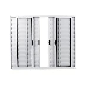 Veneziana 120x200 6 Folhas – Alumínio Branco – Linha 18 Modular Janela do tipo Veneziana com 2 folhas veneziana fixas e 2 folhas veneziana móveis (de correr) + 2 folhas de vidro móveis (de correr). Fecho central. Já vem com vidro incluso e pronta para instalar. Não enferruja. De fabricação própria.