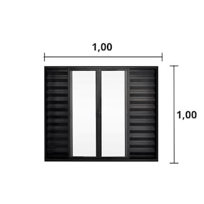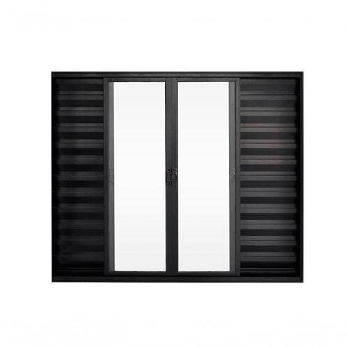 Veneziana 6 folhas com grade/sem grade, possui duas folhas móvel com veneziana, duas folhas móvel sendo de vidro e duas folhas fixas.