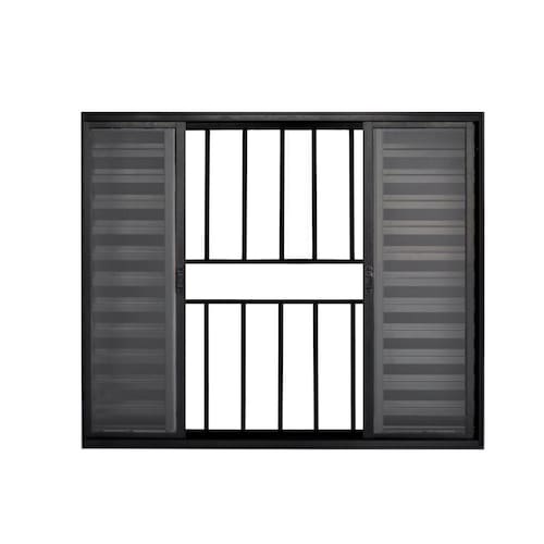 Veneziana 6 folhas com grade possui duas folhas móvel com veneziana, duas folhas movel sendo de vidro e duas folhas fixas.